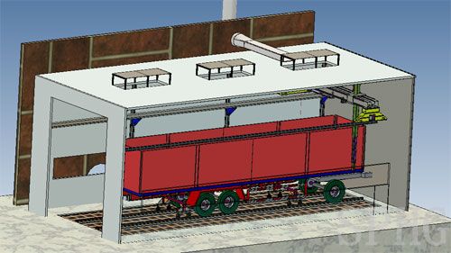 該設備利用基于PC的CNC技術、PLC可編程控制技術及伺服驅動系統,通過對專用車大型箱體噴涂工藝研究,我公司自主研發了專用車大型箱體CNC自動噴涂系統、封閉式凈化噴漆房及噴槍自動執行裝置,通過預先對專用車大型箱體外形及噴涂圖案、顏色進行實時編程并存儲到CNC自動噴涂系統中。工件進行噴涂時調出相應的程序,進行全封閉的自動噴涂。由于工人遠離了噴漆房,避免了油漆對工人的身體傷害,通過水簾對漆霧凈化保護了大氣環境。